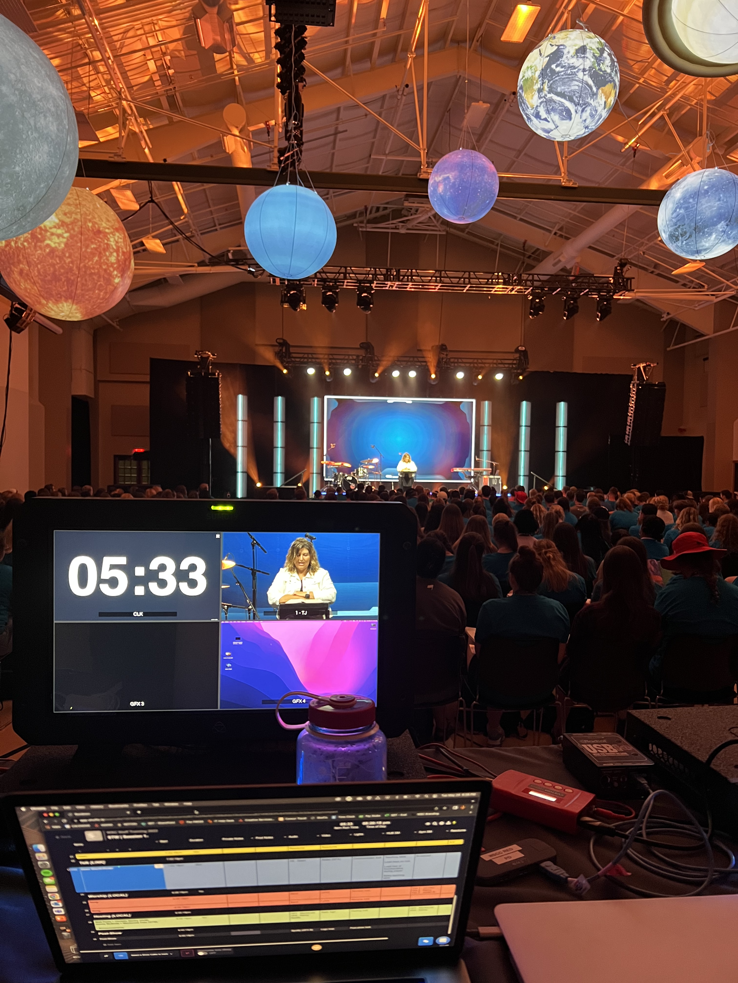 Set design, program planning, crew management, and show-calling contributions include Q Ideas, Passion Productions, WinShape Camps, and more.